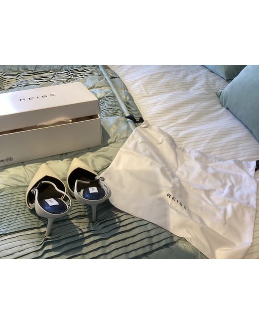 Elevate your ensemble with these elegant Reiss stiletto heels, a blend of contemporary style and classic comfort. Crafted with a supple leather upper and a sleek pointed toe, these shoes are a versatile addition to any wardrobe. The off-white hue offers a chic, neutral palette that pairs effortlessly with a range of outfits, from tailored trousers to your favourite dresses. Standing at a poised 11cm heel, these strappy sandals provide both height and comfort. The interior boasts a leather insole and a durable synthetic outsole designed to support and endure. EU size 39 and UK size 6, these Reiss heels are a sophisticated choice for any occasion that calls for a touch of class.