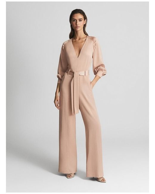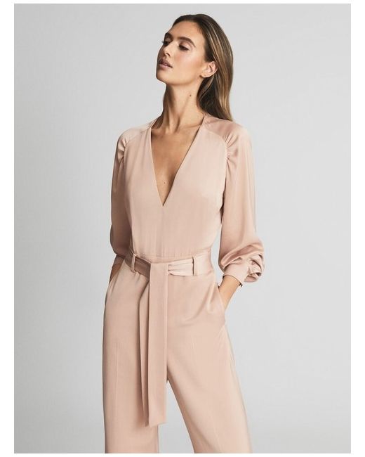 Reiss Elsa jumpsuit, natural / dusky pink. Size 12. Will need steaming / ironing as creased from storage. Minor snags to fabric on sleeve and pocket