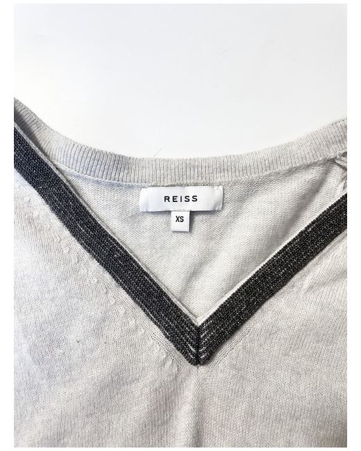 Reiss wool and alpaca blend v-neck jumper with beaded neckline. Material: 41% viscose, 34% nylon, 19% wool, 6% alpaca.
