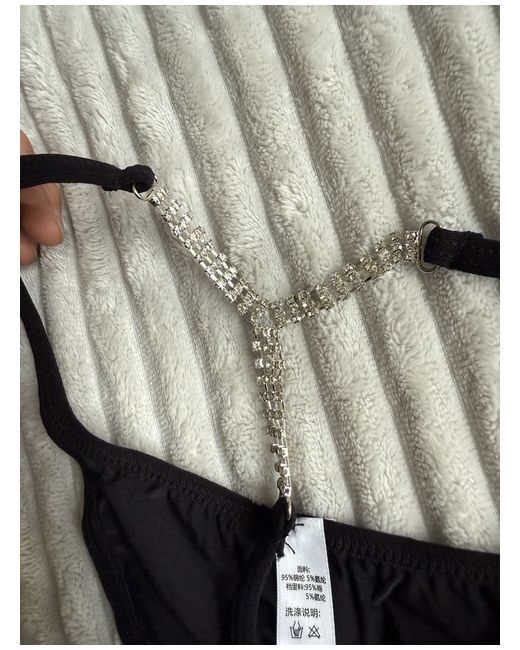 Uk size 10-12 This product is a very sexy V-string G-string thong in size medium, perfect for women looking for a bold and daring lingerie option. The black colour and rhinestone accents add a touch of glamour and sophistication, making it a stylish choice for those who want to feel confident and alluring. The brand, "Very," suggests a focus on quality and design, ensuring that this piece is both comfortable and eye-catching. Perfect for those who want to spice up their wardrobe with a provocative and chic addition.