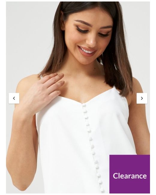V by Very Value Button Through Longline Cami - Ivory Womens UK 10 RRP £26 BNWT. V by Very Value Longline Cami Size & Fit True to size – order your usual size Loose skimming fit Hits below hip Model is 5’9” and a standard UK size 8 Details Button Through Longline Cami from V by Very Ivory A simple summer essential Dress up or down – add accessories Flattering V neck Vintage-style fabric-covered button detail to front Adjustable shoulder straps to suit Material Material Content: 100% Polyester