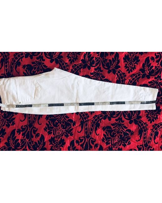 The white denim fabric with embroidered accents adds a touch of elegance to the jegging style jeans, making them ideal for any occasion.