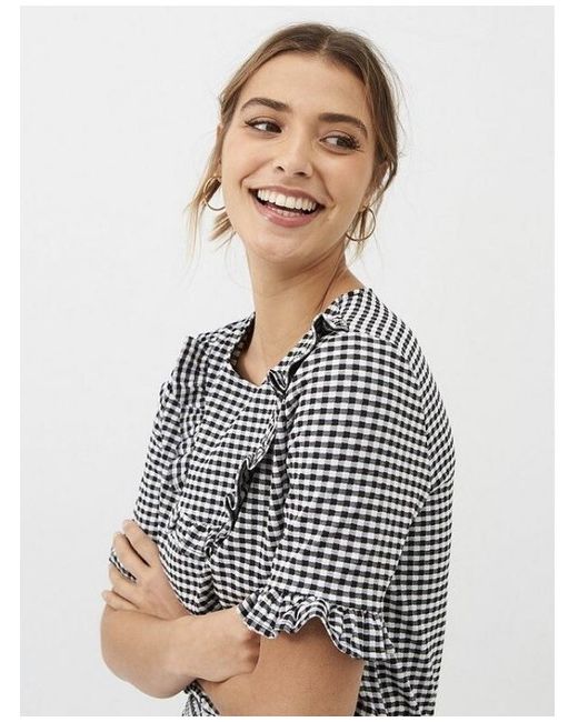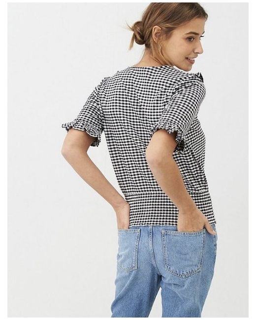 Ruffled and smocked for added style, this V by Very blouse is a style staple to insert to your wardrobe. Gingham print. Bib Front Blouse from V by Very. Regular fit on the bodice. Material Content: 86% Polyester 12% Viscose 2% Elastane.
