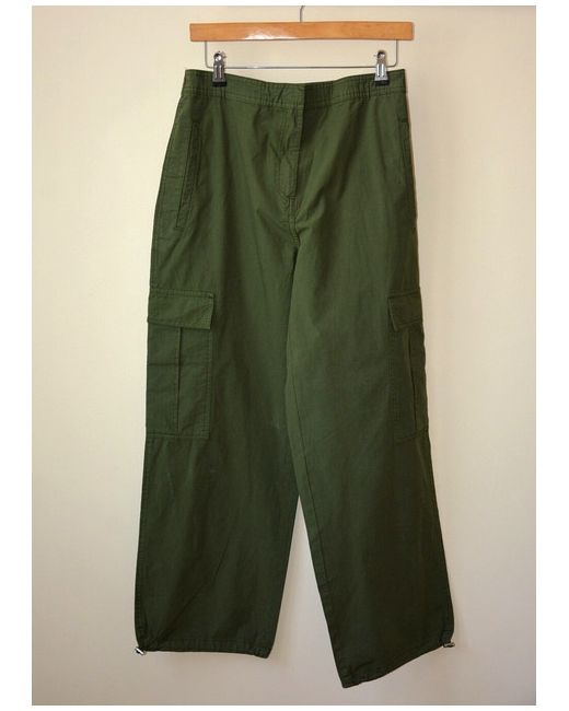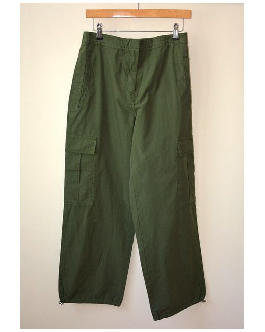 Parachute Style Casual Trouser. Drawstring Can Be Drawn In To Give A Parachute Style. Adjustable Drawstring Cuffs. Army Green. Zip,Button And Hook & Bar Front Fastening. Non Stretch Fabric. 100% Cotton.