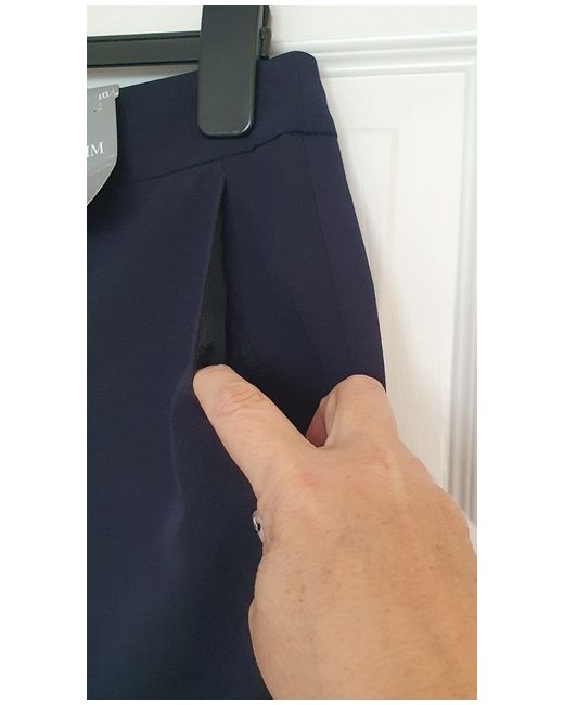 The F&F Navy Blue Slim Trousers in size 16 feature a mid-rise waist with a split hem, perfect for a range of occasions from casual to formal. Made from a blend of polyester, viscose, and elastane, these trousers offer a slim fit and are designed to be flattering. The zip, button, and hook & eye closure ensures a secure and stylish finish. The skinny leg style and 27-inch inside leg make these trousers a versatile wardrobe staple for the modern woman.