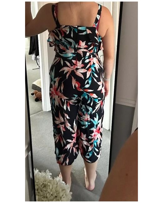 Step out in style with the F&F Floral Jumpsuit, a charming one-piece that's perfect for any occasion. This size 16 ensemble showcases a vibrant, multicoloured pattern that's sure to turn heads, and the handy pockets add a practical touch to this fashion-forward piece. Tailored for the regular fit, the jumpsuit is designed to flatter with a comfortable and relaxed style. Ideal for the woman who loves to combine elegance with ease, the jumpsuit is a versatile addition to your wardrobe, whether you're dressing up for an event or keeping it casual for a day out.