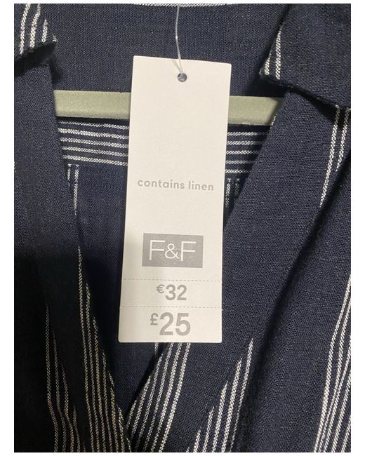 Playsuit by F&F Blue and white striped Button front Belted 2 pockets Linen blend material - see label