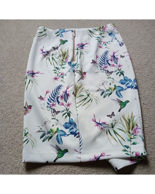 size 10 white skirt with bird and flower design. from a smoke and pet free home happy to combine postage if you're buying more than 1 item