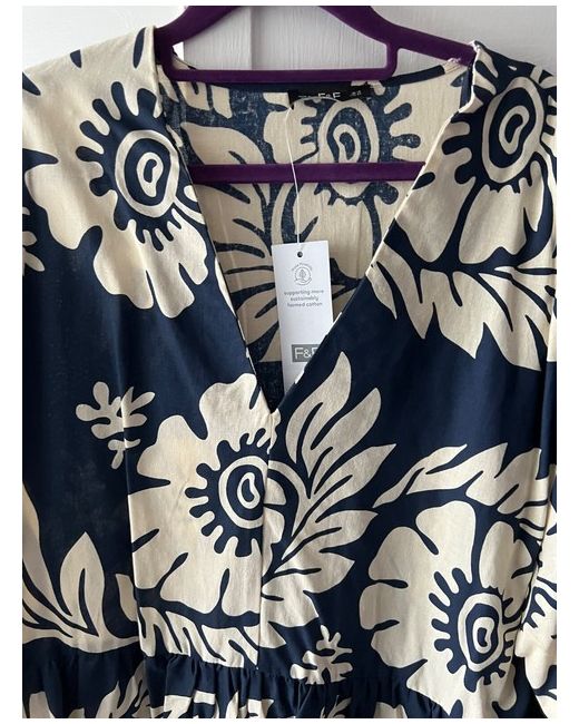 This BNWT F&F tunic dress in size 14 features a boho style with a blue patterned design, perfect for women looking for a relaxed and stylish piece for their wardrobe. The dress has 3/4 sleeves and a comfortable above-the-knee length, making it suitable for various casual occasions. Made from cotton fabric, this tunic dress offers a comfortable and breathable wear experience for everyday use.