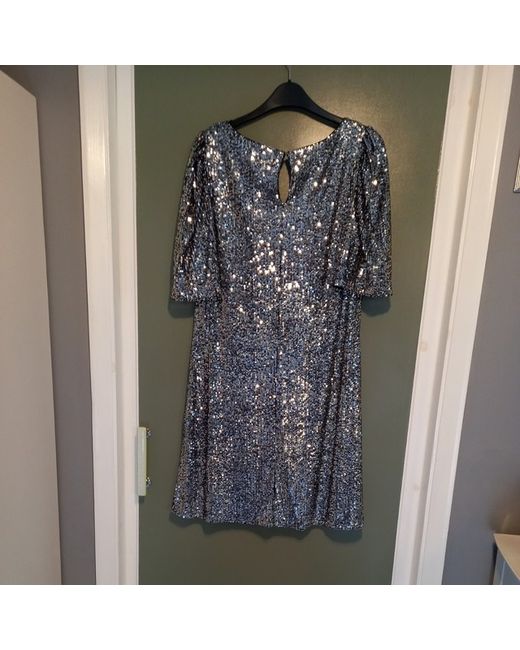 This lovely dress is new and unworn but the sleeves have been altered. Originally the dress had puff sleeves which I didn't like so now they are semi angel. Please see the photos to see how they are professionally done. The dress is heavy and fully lined and a simple A shape Length 91 cms/36" Armpit to Armpit 44 cms/17" unstretched Sleeve seam 13cms/5" width 46cms/18"