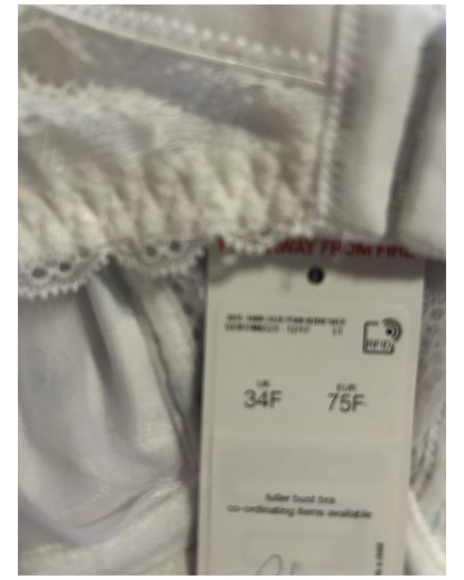 This is a new F&F T-Shirt Bra in a size 34F with underwire support. It features full coverage and adjustable straps, making it comfortable for daily wear. The bra is designed with a multicoloured pattern, suitable for adding a pop of colour to your lingerie collection.