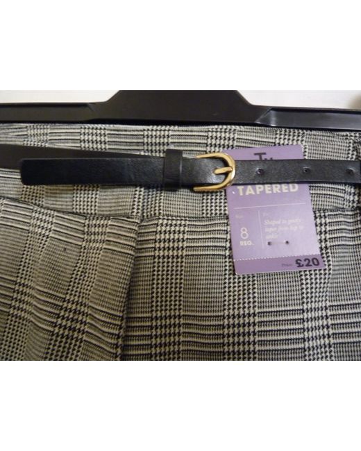F & F womens grey white and black checked tapered trousers size 8 regular with a black belt and zip fastener Brand new with tag cost £20