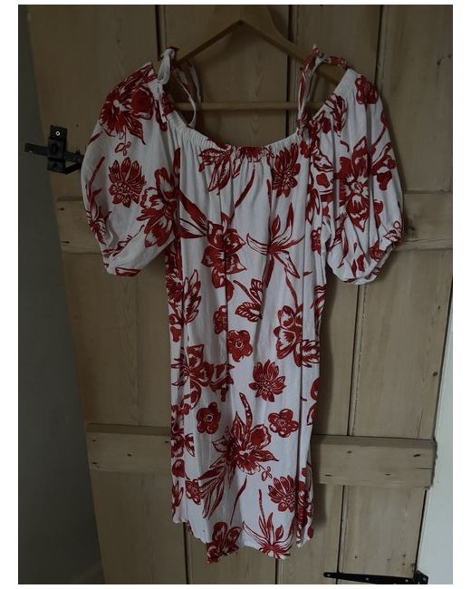 Pretty graphic print casual summer dress from F&F. Generous sizing,UK 16. White with bold red floral print,short puff sleeves,round elasticated neck. This dress features ties at the neck which can be worn tied over the shoulder or not,allowing the wearer to switch up an on or off shoulder look,very versatile! The dress is new without tags,never worn.