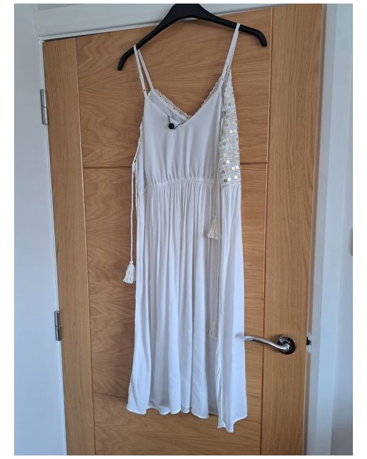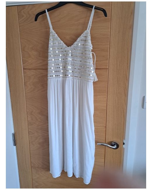 This stunning cream and brushed gold sequined sundress from F&F is the perfect addition making it both comfortable and stylish.