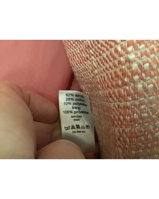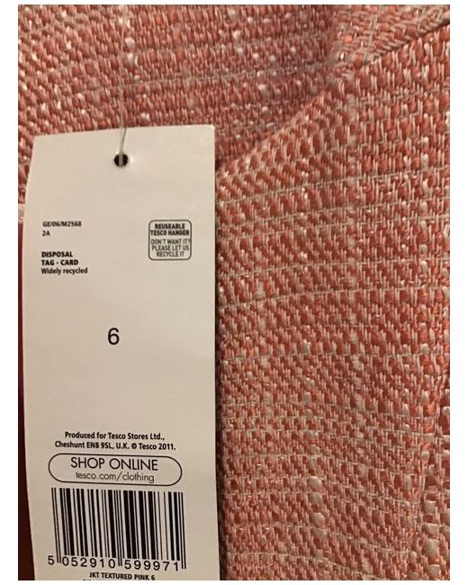This F&F jacket collarless jacket in a beautiful shade of pink is a must-have for any stylish woman's wardrobe. Made from an acrylic and cotton blend, it's perfect for cooler days. The textured design adds a unique touch to the classic cropped jacket style, making it a versatile piece that can be worn for both casual and formal occasions. The jacket features front flapped pockets, an angular shape, padded shoulders and a subtle shimmer in the fabric. With a size of 6 and a regular fit, this jacket is sure to flatter any body type. Perfect for layering over any outfit, this F&F jacket is a great addition to your wardrobe.