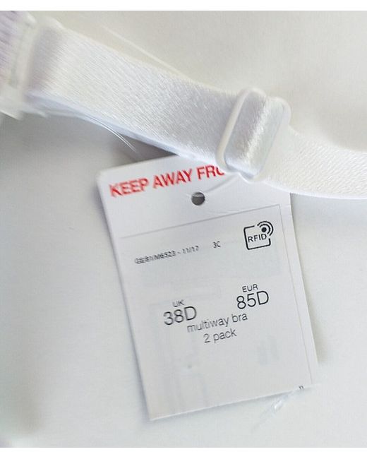 Women's Multicolor Bra White 38D Underwired Padded Detachable Straps Multi way NEW