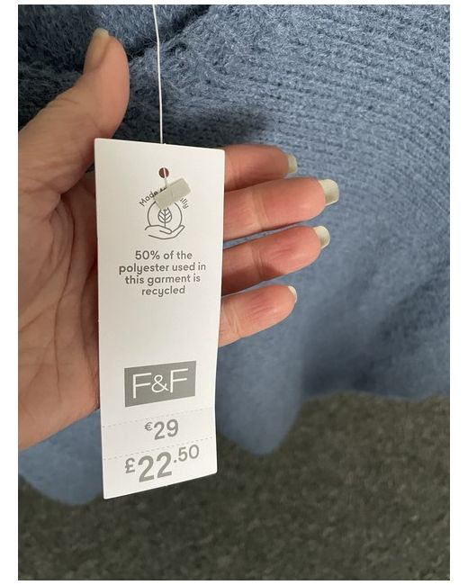 This F&F Jumper in a regular fit is perfect for women looking for a casual pullover sweater. Made from a knit fabric in a stylish blue colour, it features a round neck neckline and is tagged as size small (S). Ideal for everyday wear, this new with tags jumper is a modern addition to any wardrobe.