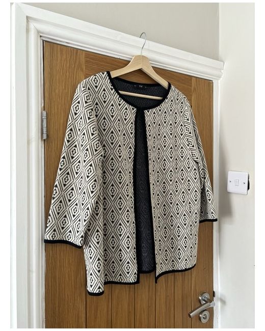 Title: F&F Geometric Open Front Lightweight Cotton 3/4 Sleeve Cardigan in Cream. Details: Hook and eye closure. Size: UK 14. Delivery: Next day dispatch via Evri, excluding weekends. Additional Info: PM for measurements, open to offers. #FF #GeometricCardigan #LightweightCardigan #CreamCardigan #OpenFrontCardigan