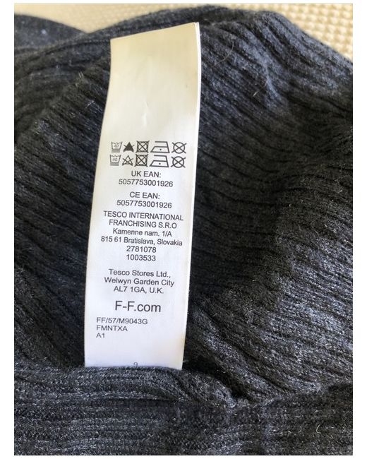 Lovely shape with horizontal seam half way down and no vertical seams below. No fastenings, intended to droop. As such, would fit a larger size than the label says, eg, up to size 20. There is lots of give in the arms.