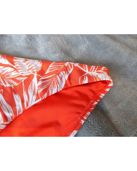 This is a great way to give yourself another Bikini simply add a coloured top and you have it. This is a lovely bottom that has a tropical leaf pattern all over it in white on a red background. The inside is lined in a matching red coloured material.