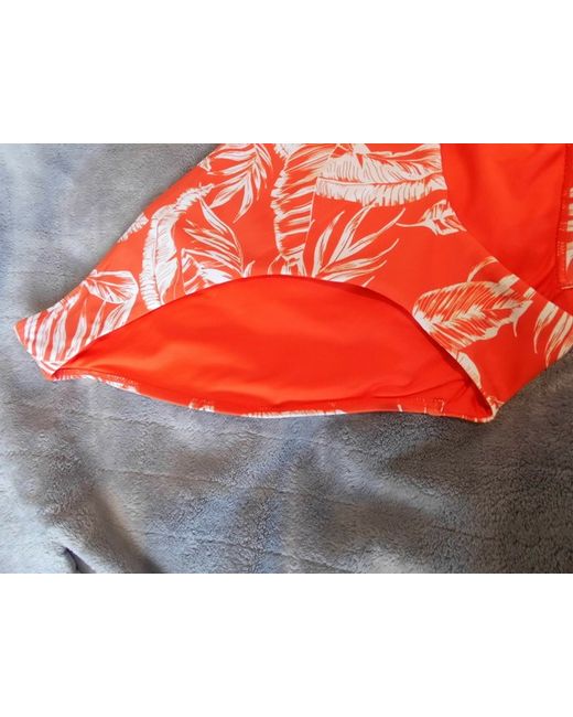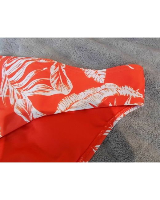 This is a great way to give yourself another Bikini simply add a coloured top and you have it. This is a lovely bottom that has a tropical leaf pattern all over it in white on a red background. The inside is lined in a matching red coloured material.