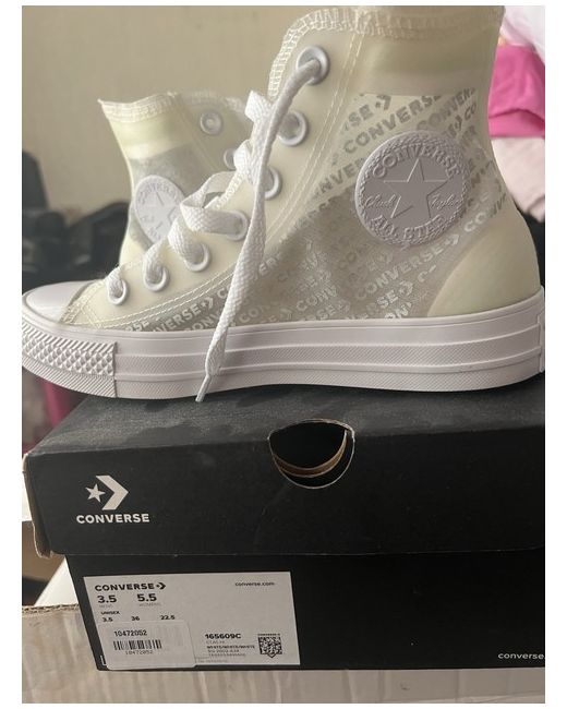 Converse high top trainers in clear white, logo design brand new comes with box size 3.5 UK