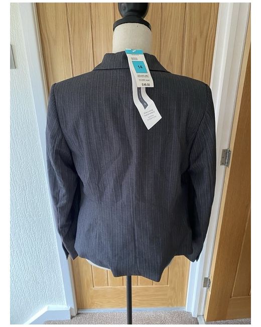 The grey colour and basic jacket style make it versatile enough to wear with any outfit. The outer shell is made of polyester, and it is a regular size 14. It's perfect for any occasion, whether you're going to work or running errands.