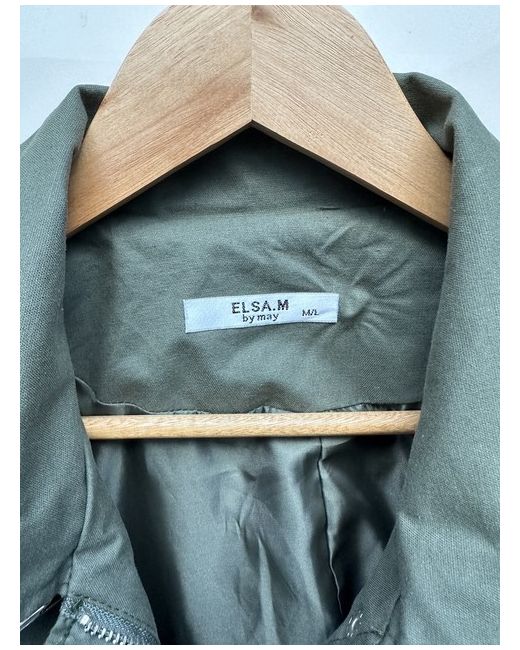 Women’s khaki utility jacket. Size M/L. By Elsa.M by May. 100% cotton. Would fit UK 10-14. Adjustable waist & zip fastening. Silver button design.