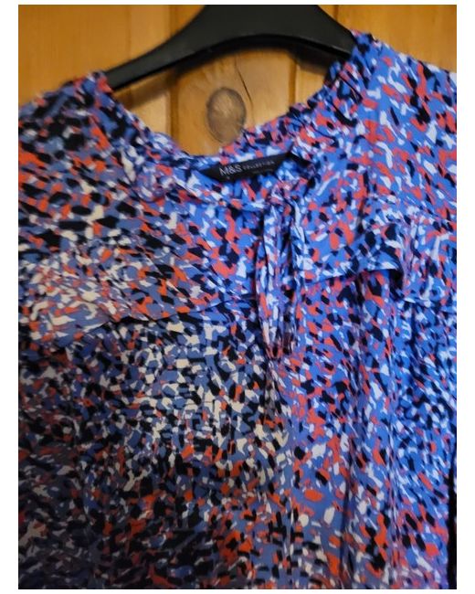 Add a pop of colour to your wardrobe with this stunning blouse from M&S. The geometric pattern, high neckline, and puff sleeves with ruffle and tie accents make it perfect for any occasion, whether it be a wedding, party, formal event, or business meeting. The pullover closure and relaxed fit ensure comfort, while the non-iron feature and machine washable garment care make it practical for everyday Crafted from viscose microfibre, this multicoloured tunic-style blouse is a must-have for any fashion-forward woman who loves to make a statement. It's available in regular size, and the vintage-free design ensures it's perfect for the modern-day woman who loves to mix and match her wardrobe. Get ready to rock the summer and spring seasons with this gorgeous blouse.