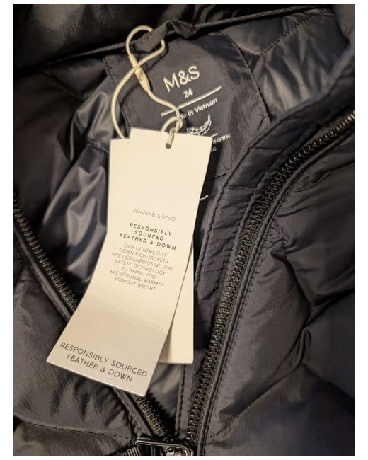 New with tags from Marks and Spencer's shower resistant stormwear Feather and down quilted jacket Drawstring middle Black Size 24 Really warm but also lightweight