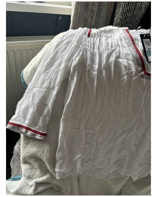 Crafted by M&S, this white blouse is a wardrobe essential for those who appreciate a blend of classic style and comfort. The size 14 top features a charming floral pattern, lending a touch of elegance to your casual attire.