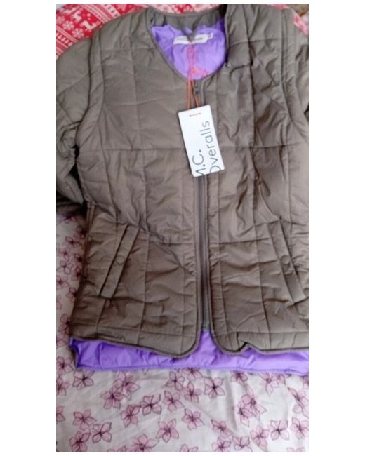 This M & M brand jacket is a basic sleeveless design made of nylon material. It is a new item with tags and comes in size 2XS. The beige colour of this jacket is perfect for any outfit and can be worn on any occasion. This padded jacket is perfect for keeping you warm in cold weather. The jacket has a zip-up front and is a regular size type. It is a must-have for any woman looking to add a stylish jacket to their wardrobe.