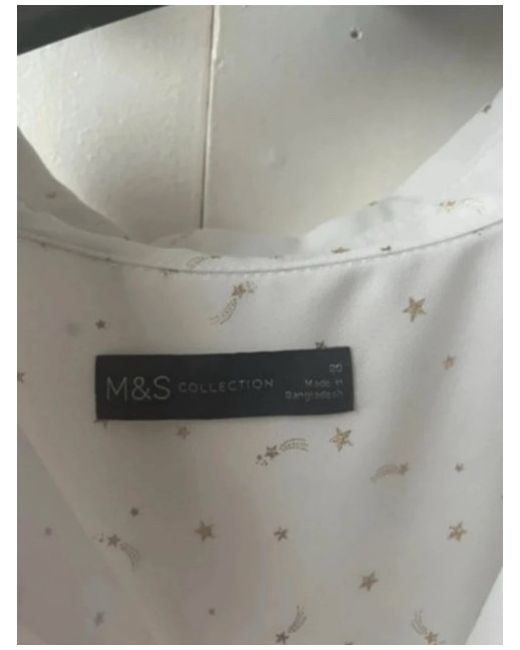 Woman’s white buttoned shirt with little gold stars on it True to everything Has no stains or rips in it Like brand new
