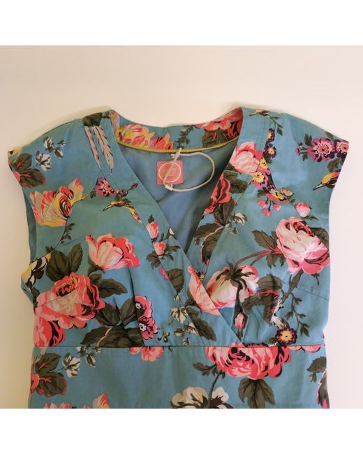 New without Tag Turquoise Light Blie Colour Floral and Bird Pattern Side Zip Fastening V Neck, Tailored Bust Below knee but not quite midi Cotton and lined Joiles Size 8 Rear vent