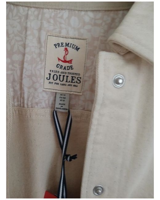 This Joules women's jacket in size 12 is a stylish and practical addition to your wardrobe. Made from a cotton blend outer shell, it features long sleeves and a regular fit, making it perfect for casual occasions in autumn and spring. The ivory colour adds a classic touch . Machine washable and manufactured in Bangladesh, this basic jacket from the popular brand Joules is both timeless and versatile, suitable for everyday wear.