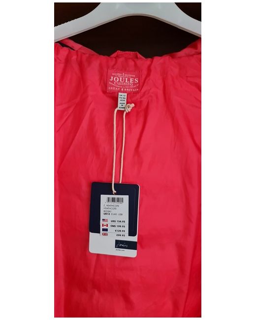 Joules padded coat, size 12. Front zipped pockets. Drawstring inside to tighten waist as required. Lightweight but warm. Colour is a pinky/Red shade (light Red) This jacket is brand new with tags still attached. RRP £99.95.