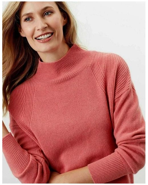 Turtle neck. Colour- Ruby pink ( as you can see the Colour looks different under different light sources). Fully fashioned neckline. Ribbed neck, hem and cuffs.
