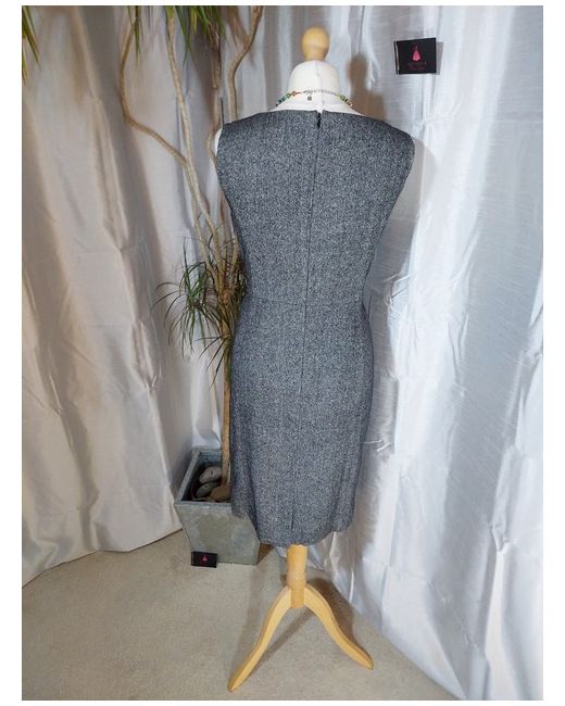 The grey colourblock design with ruffle accents exudes classic and chic style, reminiscent of Audrey Hepburn's iconic look. The knee-length pencil dress features a strappy sleeve and round neckline, perfect for formal occasions like weddings or parties.