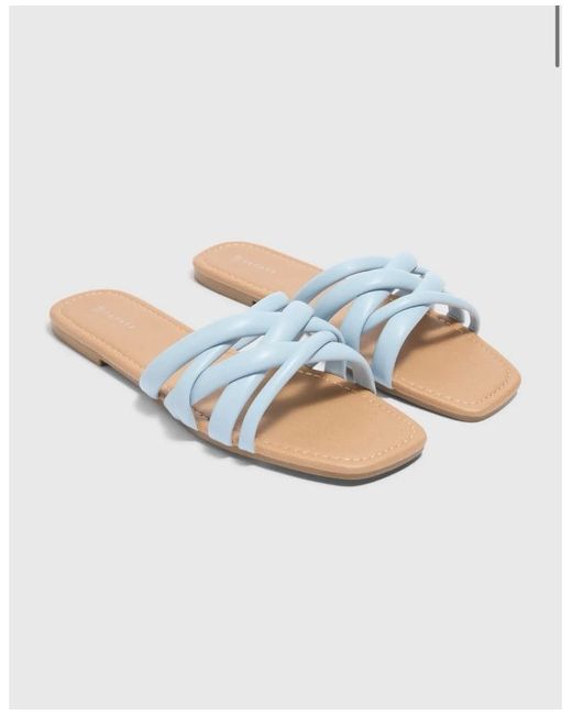 These are blue strappy mules for women by the brand Papaya. They are UK size 6 with a slip-on style and a standard shoe width. The upper material is faux leather with a leather lining and a synthetic outsole, making them suitable for summer wear. The insole material is synthetic, providing comfort for the wearer.