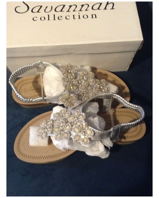 I have a Size 4/ 37 Savannah Silver Flat Sandals. This pair is new in a box.