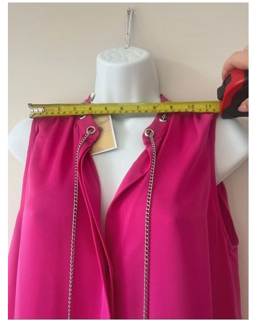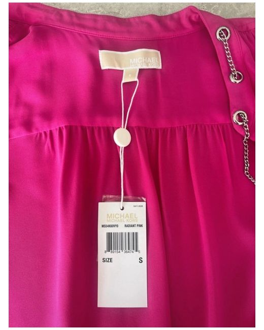 Elevate your summer wardrobe with the Michael Kors Chain Neck Blouse, a must-have for those who appreciate a blend of sophistication and comfort. Crafted from luxurious silk material, this blouse features a flattering short sleeve design and a regular fit that complements the body's natural silhouette. The blouse comes in a lovely pink hue, perfect for pairing with your favourite jeans or skirt. Whether you're dressing up for an evening out or keeping it casual for a day by the beach, this Michael Kors blouse is an effortless way to add a touch of elegance to your ensemble.