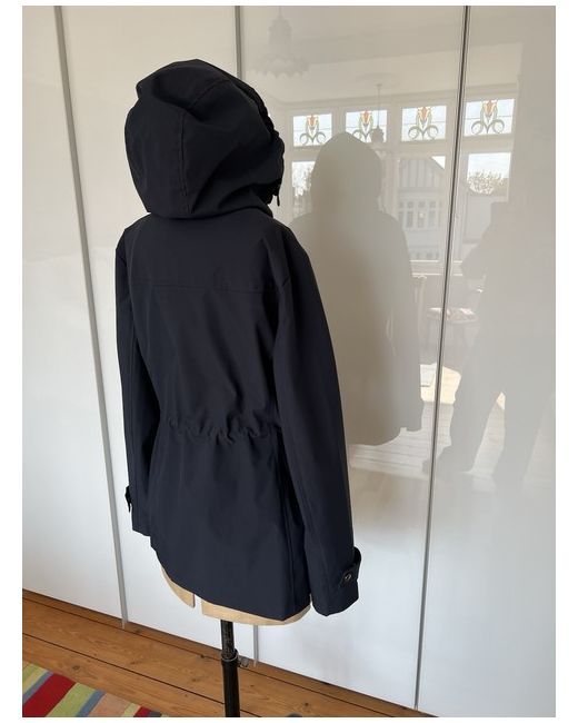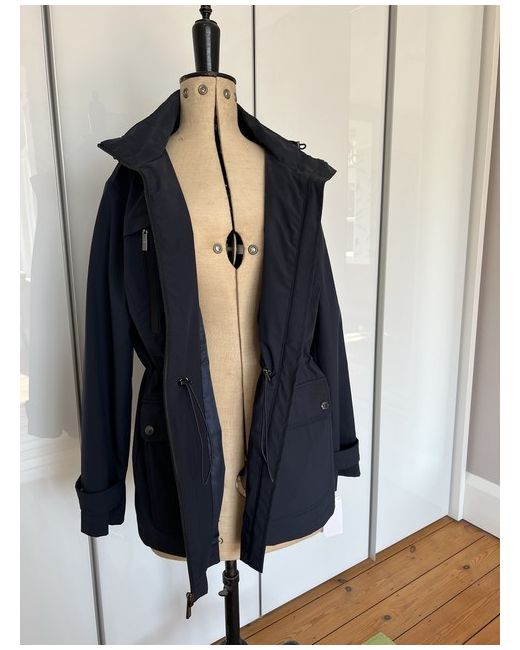 Made from polyester, it features a full zip closure, removable hood, and waist inner ties to alter the size. With its detachable hood and convenient pockets, this jacket combines fashion and functionality seamlessly.