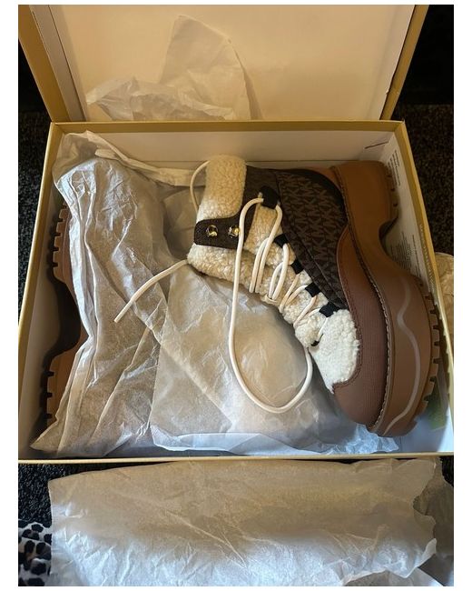Elevate your shoe game with these stylish Michael Kors combat boots. Crafted with high-quality leather in a rich brown colour, these boots are perfect for any occasion. The boots are designed for women and come in size 5. The boots feature a sturdy construction with a comfortable fit, making them perfect for everyday wear. The Michael Kors brand is known for its quality and style, and these boots are no exception. Add these boots to your wardrobe today and step up your fashion game.