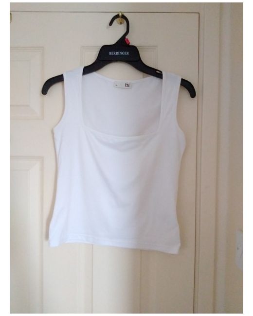 Women's White square neck top vest 10 polymide elastan lycra stretch showsnice bustline