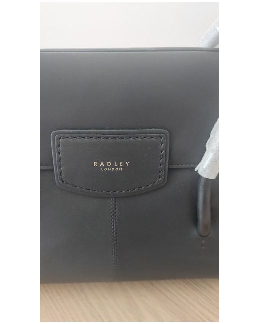 The Black Radley Burnham Beeches Handbag is a stylish medium-sized shoulder bag made from black leather with a pink lining. It features a rectangular shape, magnetic closure, and a black leather handle/strap. This casual handbag is perfect for everyday use and includes inner pockets for added convenience. The Radley brand adds a touch of luxury, and the gold hardware details make it a chic accessory for any outfit. A bag charm adds a playful finishing touch to this fashionable handbag.