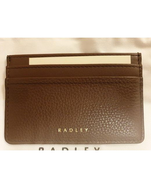 Unisex card holder new with tags and dustbag Crafted by Radley, this card holder is a sleek accessory for the modern woman or man . It boasts a classic walnut brown hue, complemented by the brand's signature pebbled leather design, providing both durability and a touch of elegance. The holder is thoughtfully accented with credit card slots, ensuring your essentials stay organised in style. It comes complete with a dust bag, perfect for safeguarding your leather goods. This one-size wallet is an ideal blend of functionality and fashion.