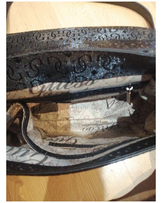 Guess Handbag Black. Small mark on the fastening part of the bag, can be seen in images. This item is available for immediate shipping.