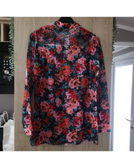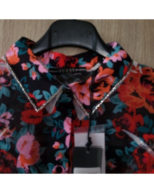 Beautiful Guess Blouse XS Size Multi Colour Floral Design Sublimation Print Extremely Sheer Polyester Material Button Up Collar with Diamanté Detail Brand New with Tags Rrp €79.90