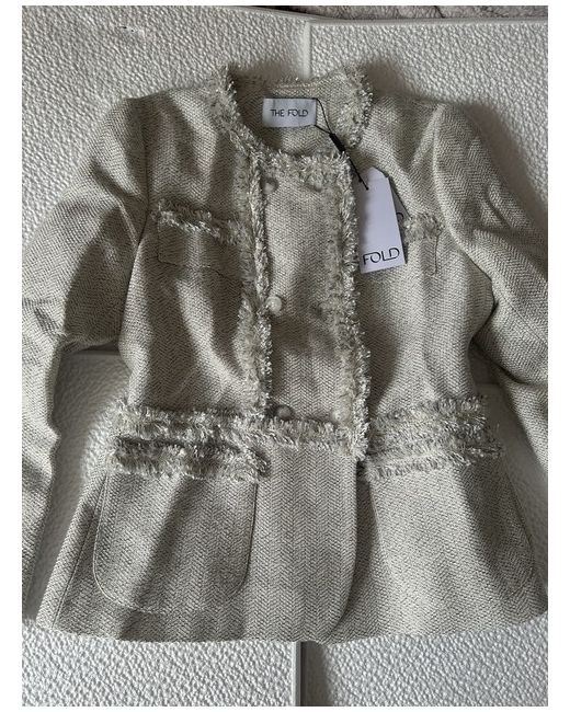 The Fold London Kinkswool Jacket in Ivory, Size 8 is a stylish and classy outerwear piece perfect for any fashion-conscious woman. Made from a luxurious blend of 45% cotton, 35% polyester, 12% acrylic, and 6% viscose, this jacket exudes sophistication and elegance. With a London theme and a timeless ivory colour, this jacket is a must-have addition to any wardrobe, adding a touch of luxury to any outfit. Perfect for layering in the transitional seasons, this jacket is a versatile and chic choice for any occasion.