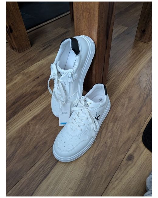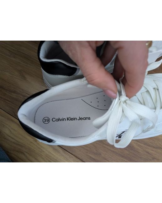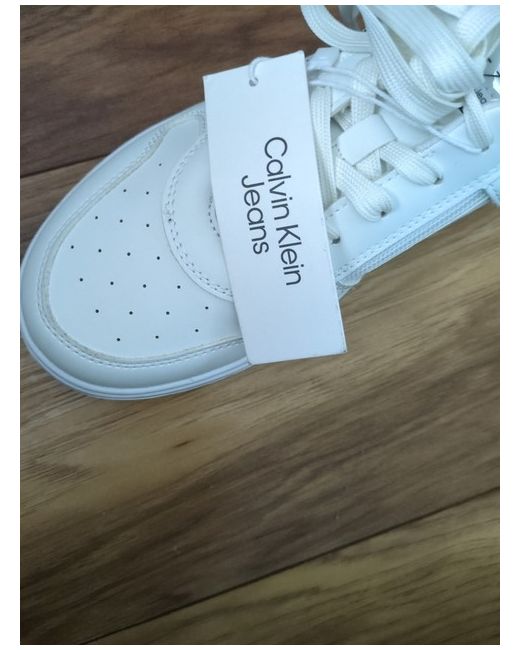 Calvin Klein Jeans sneakers, designed with a sleek white aesthetic that easily complements any casual ensemble. These unisex trainers, available in UK size 6 (EU size 39), feature a classic low-top silhouette and a secure lace-up closure, ensuring a snug fit for all-day wear. Crafted for the modern woman, these sneakers do not come customised or vintage, but they do offer the signature Calvin Klein brand's take on a timeless sneaker style. The standard shoe width accommodates a variety of foot shapes, making these white trainers a versatile addition to your footwear collection.